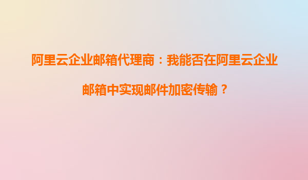 阿里云企业邮箱代理商:我能否在阿里云企业邮箱中实现邮件加密传输?