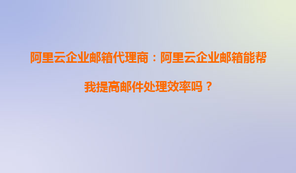 阿里云企业邮箱代理商:阿里云企业邮箱能帮我提高邮件处理效率吗?