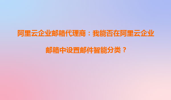 阿里云企业邮箱代理商:我能否在阿里云企业邮箱中设置邮件智能分类?
