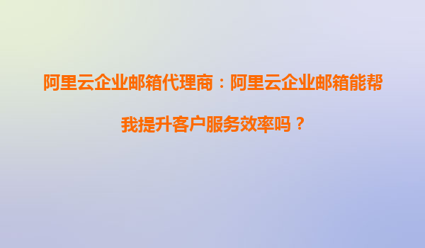 阿里云企业邮箱代理商:阿里云企业邮箱能帮我提升客户服务效率吗?