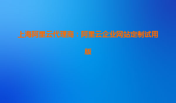 上海阿里云代理商提供的企业网站定制试用版,让客户在正式投入前能够充分体验阿里云服务的优势。