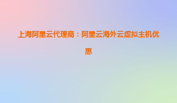 上海阿里云代理商:阿里云海外云虚拟主机优惠