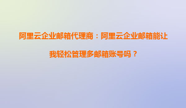 阿里云企业邮箱代理商:阿里云企业邮箱能让我轻松管理多邮箱账号吗?