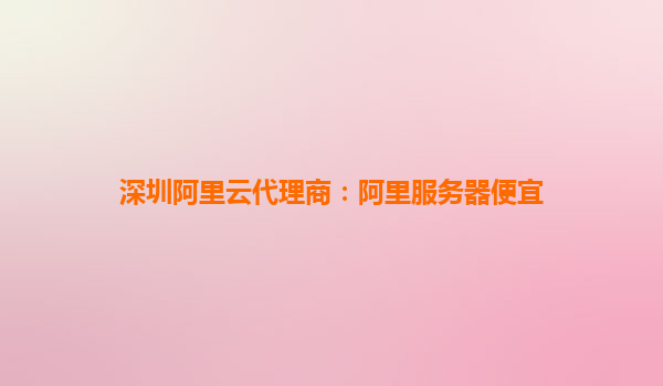 深圳阿里云代理商:阿里服务器便宜,助力企业高效上云