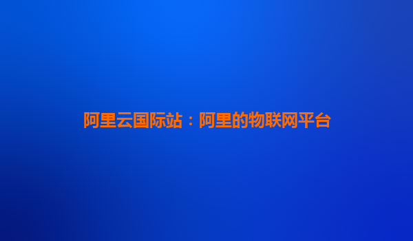 阿里云国际站:阿里的物联网平台优势解析