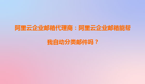 阿里云企业邮箱代理商:阿里云企业邮箱能帮我自动分类邮件吗?