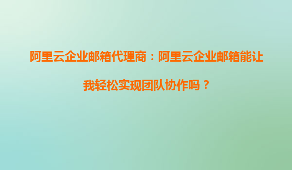 阿里云企业邮箱代理商:阿里云企业邮箱能让我轻松实现团队协作吗?