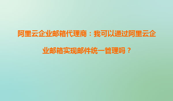 阿里云企业邮箱代理商:如何通过阿里云企业邮箱实现邮件统一管理?