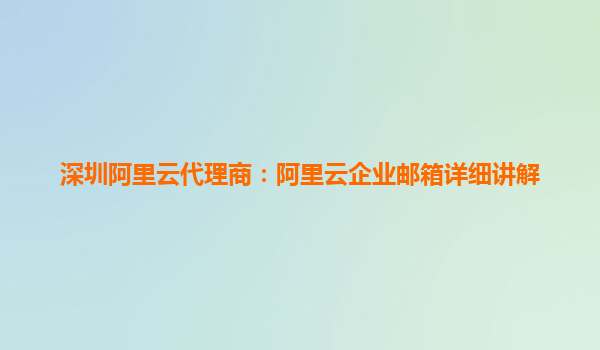深圳阿里云代理商:阿里云企业邮箱详细讲解