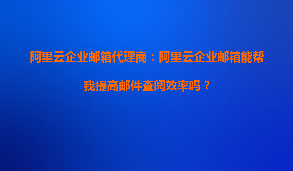 阿里云企业邮箱代理商:阿里云企业邮箱能帮我提高邮件查阅效率吗?