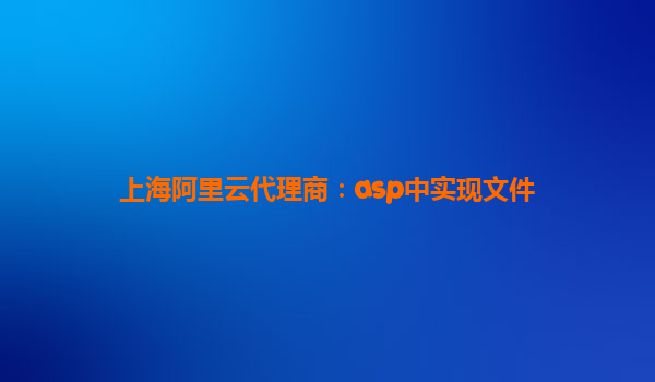 上海阿里云代理商:ASP中实现文件操作及阿里云优势解析