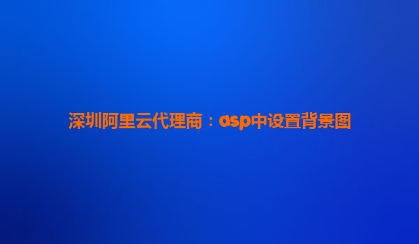 深圳阿里云代理商:ASP中设置背景图的技巧与阿里云的优势