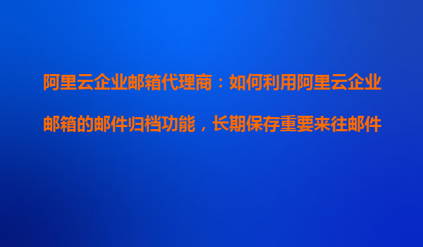 阿里云企业邮箱代理商:如何利用阿里云企业邮箱的邮件归档功能,长期保存重要来往邮件?
