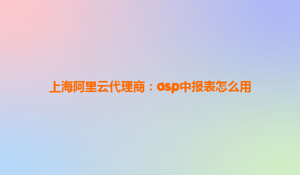 上海阿里云代理商:ASP中报表应用开发指南