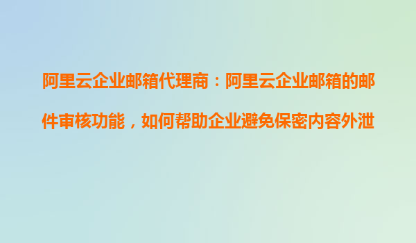阿里云企业邮箱代理商:阿里云企业邮箱的邮件审核功能,如何帮助企业避免保密内容外泄?