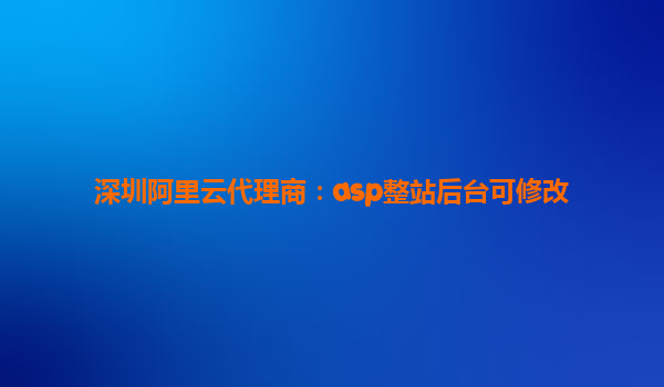 深圳阿里云代理商:ASP整站后台可修改的解决方案与优势