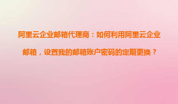 阿里云企业邮箱代理商指南:如何利用阿里云企业邮箱设置邮箱账户密码定期更换