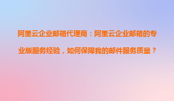 阿里云企业邮箱代理商:阿里云企业邮箱的专业版服务经验,如何保障我的邮件服务质量?