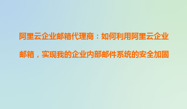 阿里云企业邮箱代理商:如何利用阿里云企业邮箱实现企业内部邮件系统的安全加固?