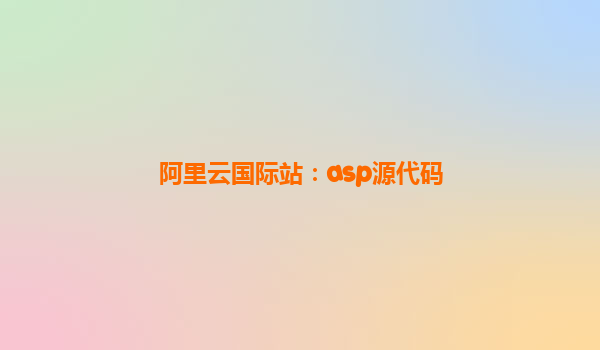 阿里云国际站为ASP源代码项目提供全球化、高性能、高安全、低成本的一站式解决方案: