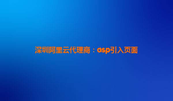 深圳阿里云代理商:ASP引入页面的实践与阿里云优势解析