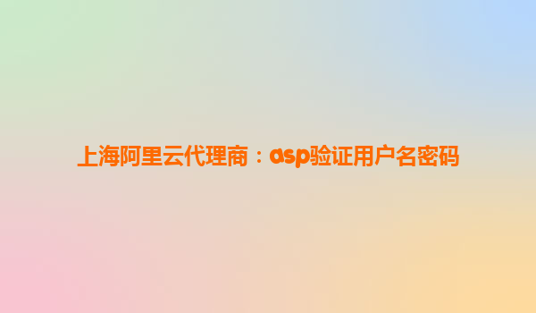 上海阿里云代理商:ASP验证用户名密码方案解析
