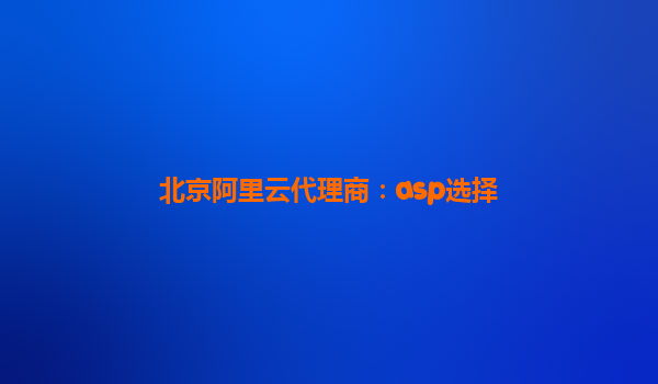 北京阿里云代理商:ASP选择的最佳云端伙伴
