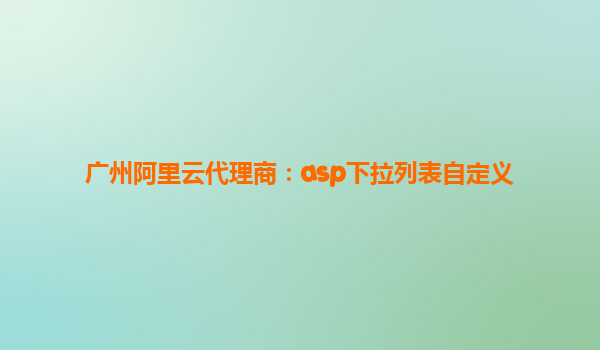 广州阿里云代理商:ASP下拉列表自定义与阿里云优势结合指南