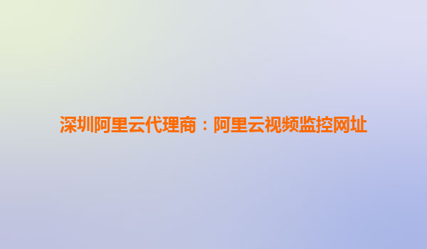 深圳阿里云代理商:阿里云视频监控解决方案全面解析
