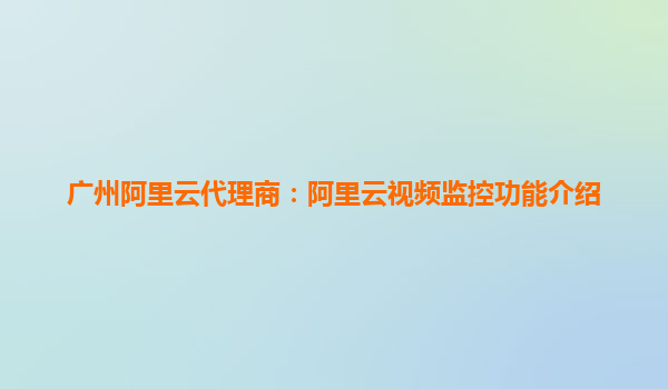 阿里云视频监控功能介绍
