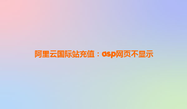 阿里云国际站充值助力ASP网页稳定运行