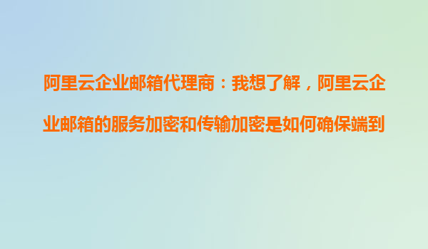 阿里云企业邮箱代理商深度解析:端到端安全加密机制及核心优势