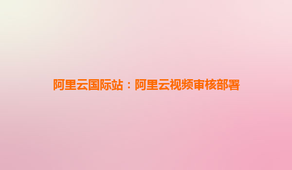 阿里云国际站:阿里云视频审核部署解决方案
