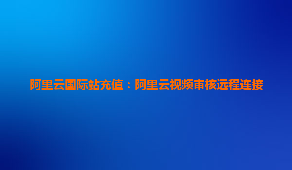 阿里云国际站充值:阿里云视频审核与远程连接解决方案