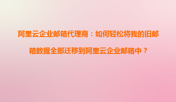 阿里云企业邮箱代理商:如何轻松将旧邮箱数据迁移到阿里云企业邮箱