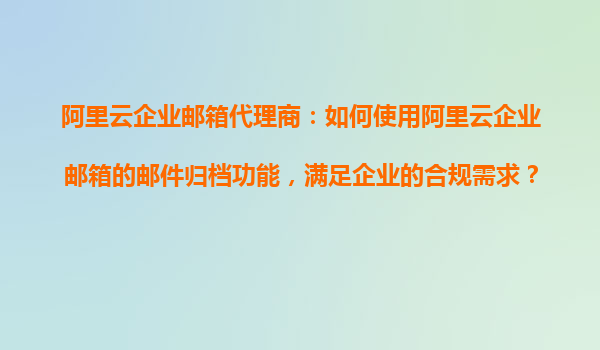 阿里云企业邮箱代理商:如何使用阿里云企业邮箱的邮件归档功能,满足企业的合规需求