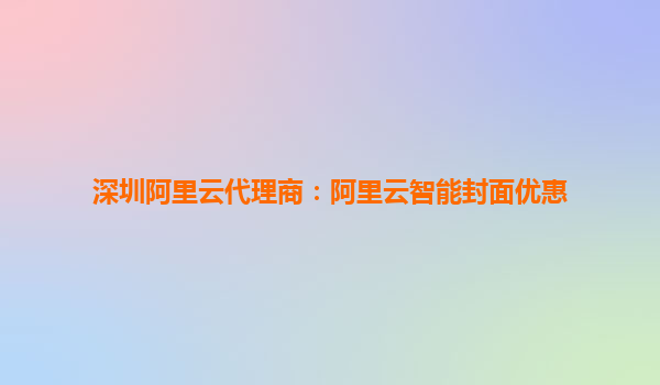选择深圳阿里云代理商,尽享阿里云智能封面优惠