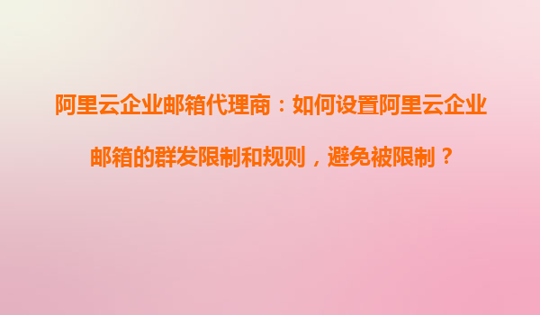 阿里云企业邮箱代理商:如何设置阿里云企业邮箱的群发限制和规则,避免被限制?