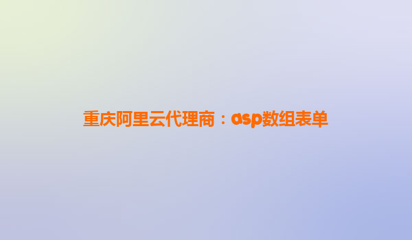 重庆阿里云代理商:ASP数组表单的智能化应用