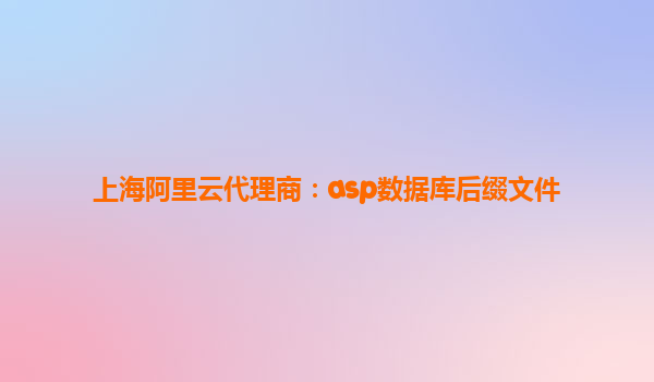 上海阿里云代理商:ASP数据库后缀文件的云解决方案