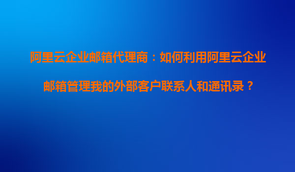 阿里云企业邮箱代理商:如何利用阿里云企业邮箱管理我的外部客户联系人和通讯录?