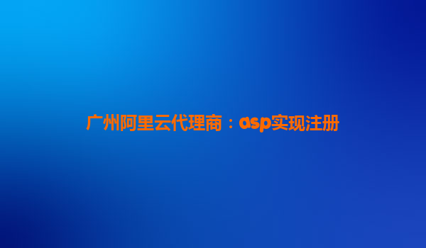 广州阿里云代理商:ASP技术实现高效注册与阿里云的完美结合