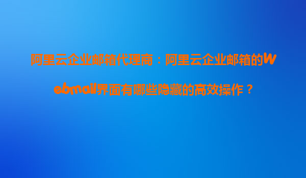 阿里云企业邮箱是企业级邮箱服务的优秀代表,其Webmail界面不仅稳定可靠,还隐藏了许多高效操作。掌握这些技巧,可以大幅提升工作效率。本文将详细介绍这些隐藏功能,帮助用户更好地使用阿里云企业邮箱。