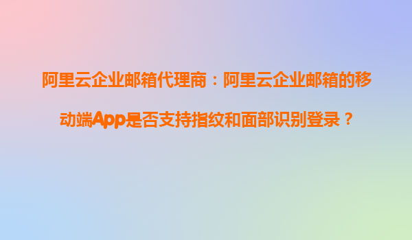 随着移动办公的普及,企业邮箱的安全性成为企业关注的重点。阿里云企业邮箱作为国内领先的企业邮箱服务,其移动端App是否支持指纹和面部识别登录?本文将深入探讨这一问题,并结合阿里云企业邮箱及其代理商的优势,为企业用户提供全面的参考。