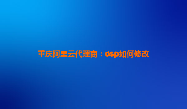 重庆阿里云代理商:ASP如何修改与阿里云优势解析