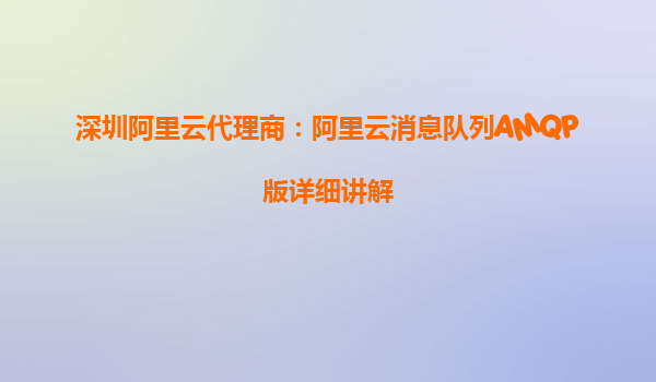 深圳阿里云代理商:阿里云消息队列AMQP版详细讲解
