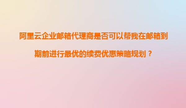 阿里云企业邮箱代理商能否帮我在邮箱到期前规划最优续费优惠策略?