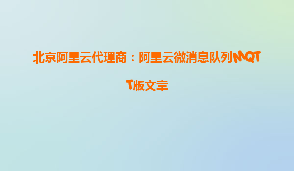 北京阿里云代理商:阿里云微消息队列MQTT版的核心优势与应用解析