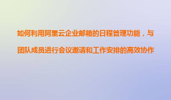 以下是利用阿里云企业邮箱的日程管理功能实现高效协作的具体方式: