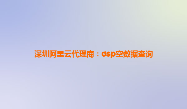 标题"深圳阿里云代理商:ASP空数据查询"包含三个核心信息点: